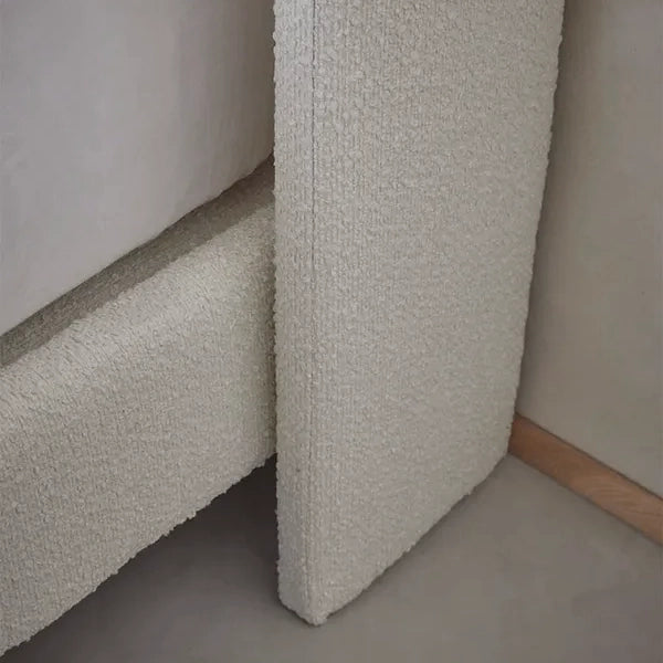 Designed with clean lines and a soft silhouette, this minimalist bed frame offers a timeless look that integrates seamlessly with modern, neutral, or Japandi-inspired interiors. The plush bouclé finish brings a gentle warmth and visual softness, making it the perfect centrepiece for a calming, high-end bedroom aesthetic.